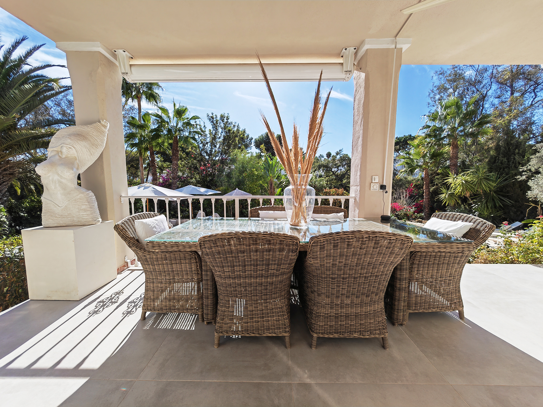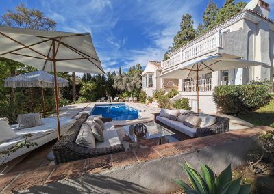Beautiful and spacious both inside and out, this stunning 4 bedroom villa is the perfect vacation home with a large garden in one of the most tranquil and established streets of Calahonda. It is surrounded by stunning greenery backing onto, and with access to, a riverbed, which has a scenic path to the sea.