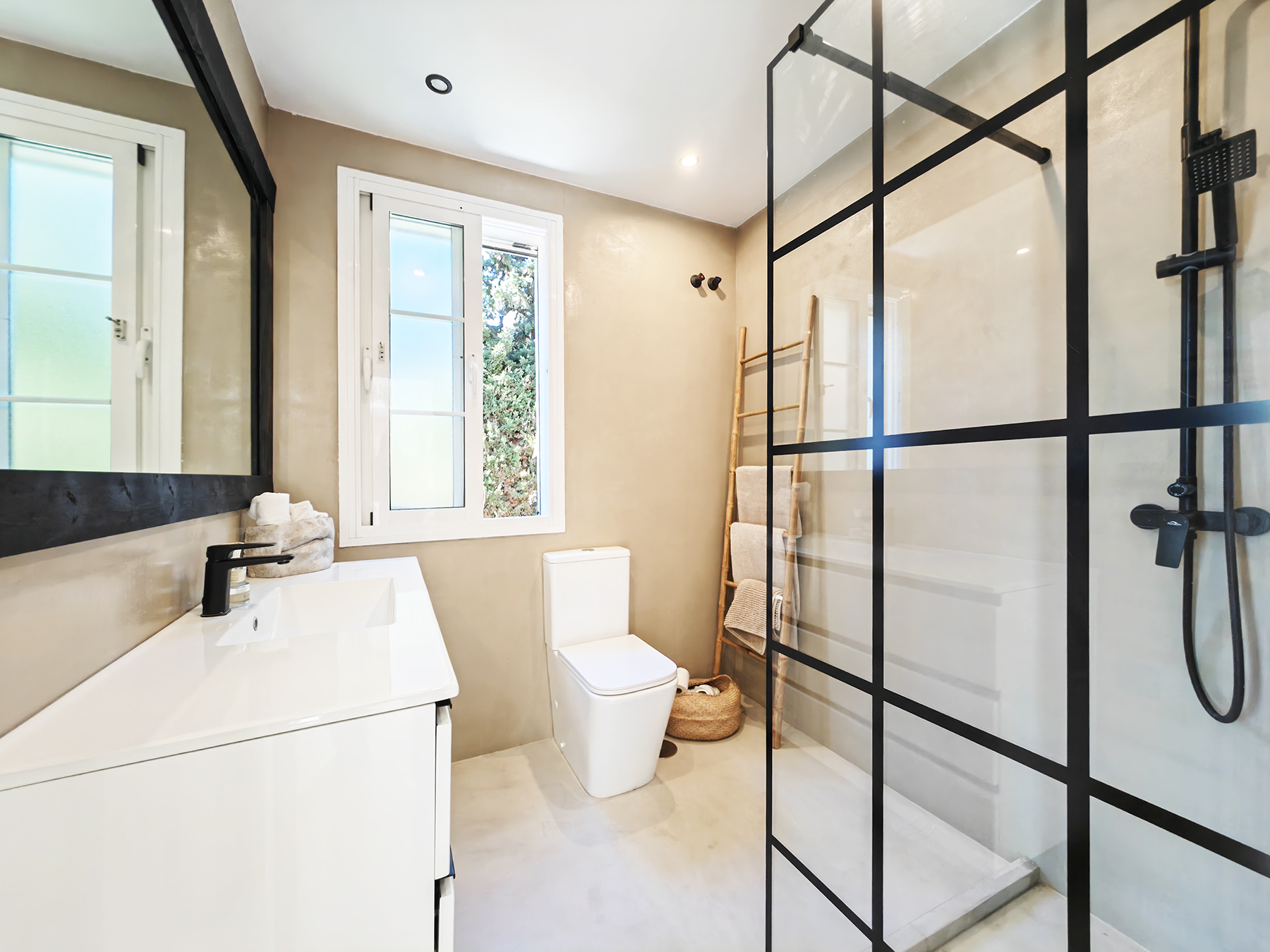 The entrance hall leads to the beautiful lounge that itself leads out onto the large terrace and mature and landscaped gardens with many established tropical trees, palms, fruit trees and roses. The entrance level also has a lovely fully equipped kitchen and a bedroom with views over the garden and a bathroom. On the second floor there are two further bedrooms and a family bathroom and a huge terrace with wonderful views of the picturesque garden and more distant tranquil views over the treetops. In addition, the lower floor hosts a fourth bedroom and a bathroom with separate entrance – ideal for teenagers / nanny flat etc.